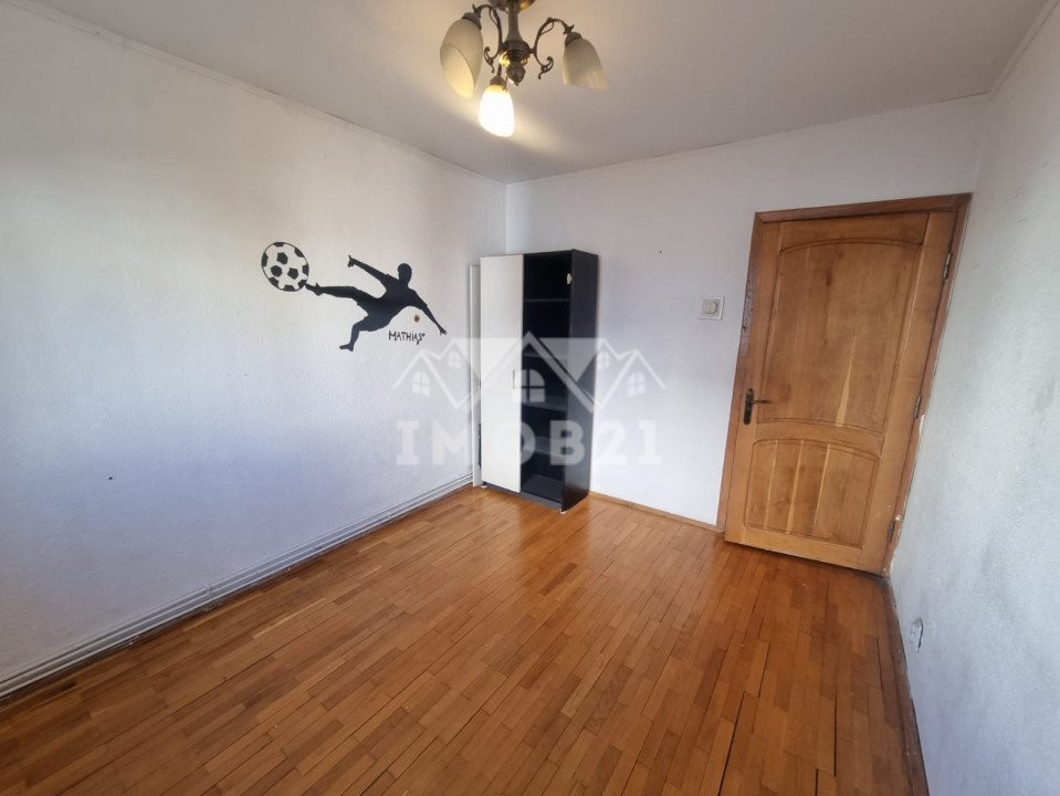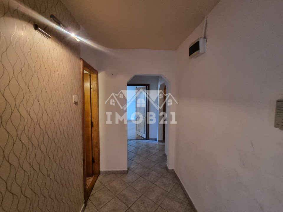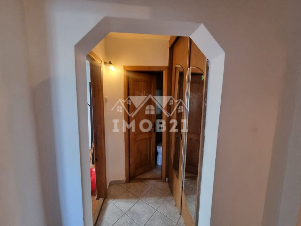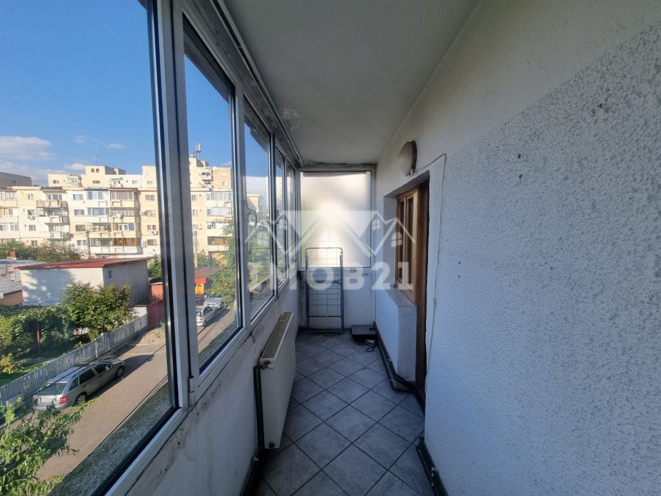 Este pozitionat cu vederea pe fata blocului si lateral spre strada principala. Confortul acestei locuinte este asigurat de o impartire buna si decomandata a incaperilor, cu doua holuri, doua dormitoare , o camera de zi de aproape 25 mp, o baie cu cada si un wc de serviciu, un balcon dispus pe suprafata sufrageriei iar celalalt dispus pe suprafata dormitorului mare ambele inchise in tamplarie PVC cu geam termopan. Utilitatea apartamentului este completata si de o debara incapatoare pentru depozitare cat si de faptul ca exista geam de aerisire la baie. Incalzirea apartamentului este data de catre o centrala proprie ce asigura confortul intregii locuinte.