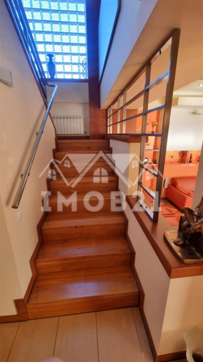 - casa scarii- scara placata cu parchet din lemn masiv si balustrada din inox