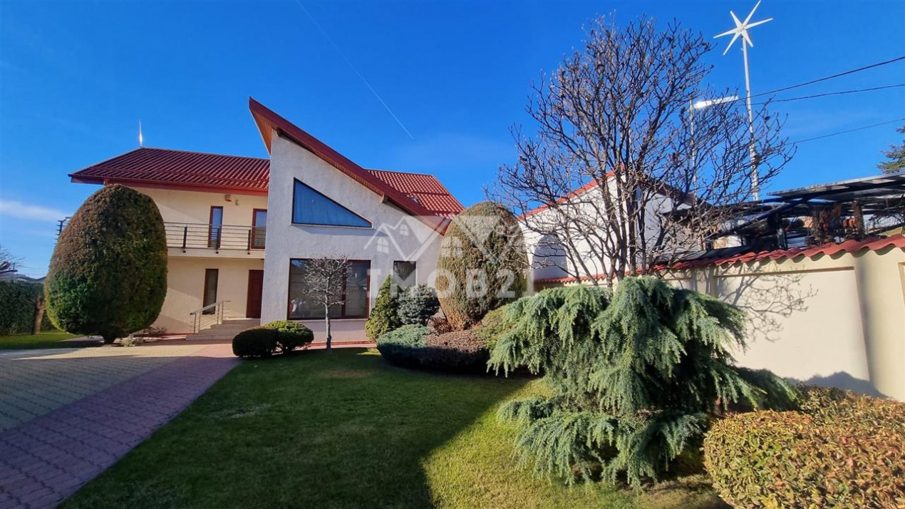 Dotari: gresie faianta parchet din lemn masiv usa metalica la intrare usi din MDF la interior tamplarie lemn de Meranti cu geamuri termopan incalzirea se face la centrala termica proprie calorifere din aluminiu aparate aer conditionat in fiecare dormitor mobilier si electrocasnice interfon balustrada din inox la toata terasa copertina electrica la terasa cu senzori de vant garaje si porti actionate electric cu telecomenzi izolata exterior. Imobilul dispune de toate utilitatile: apa gaze curent canalizare.