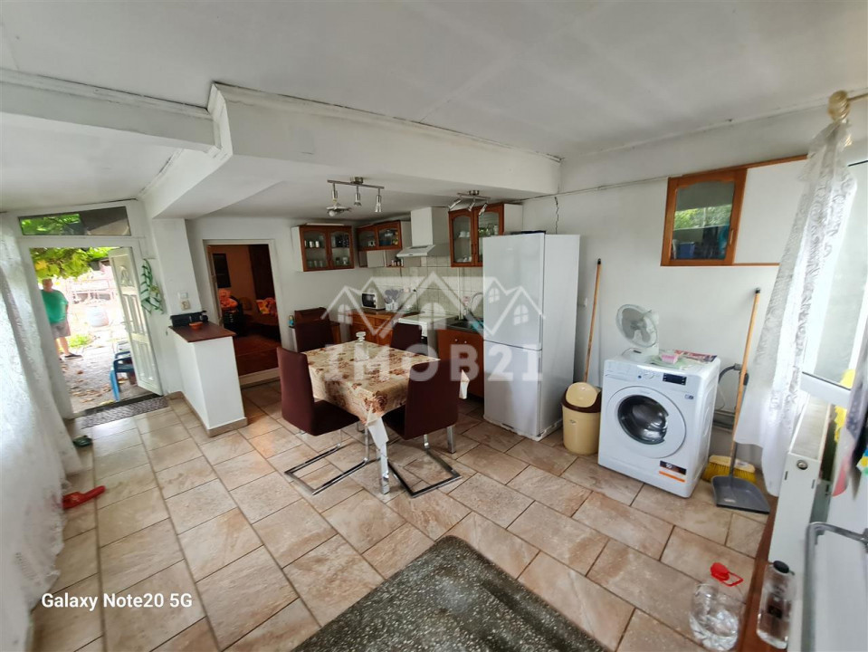 Casa este retrasa de la strada principala si cu siguranta zgomotul stradal nu va va deranja. Dispune de 3 dormitoare baie bucatarie o sufragerie mare in care piesa de rezistenta este un semineu foarte frumos. Incalzirea se realizeaza prin centrala proprie pe gaze . Unul din dormitoare este prevazut cu o terasa generoasa unde iti poti savura cafeaua de dimineata singur sau impreuna cu cei dragi.De retinut ca se mai poate construi un etaj deoarece exista placa deasupra tavanului.