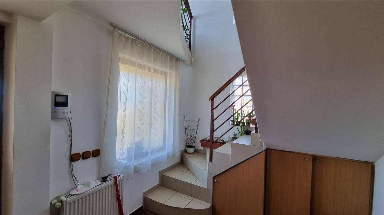 -Scara interioara placata cu gresie si cu mana curenta din lemn;