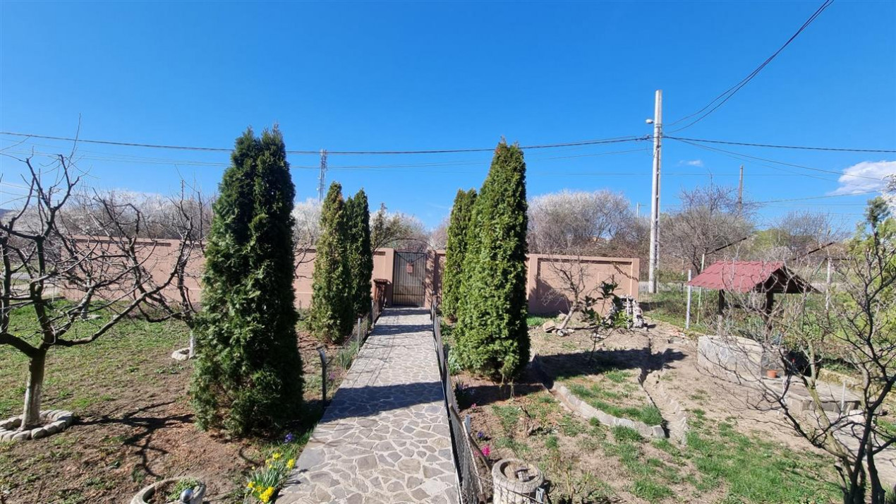 Dotari exterioare: curte betonata si pavata terasa acoperita si placata cu gresie de exterior balustrade din fier vopsea decorativa usa PVC curtea este amenajata cu arbusti si pomi fructiferi fantana cu acoperis leagan etc.